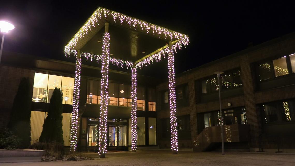 PUBLICERAT: 29.11.2018Stadshuset fick ny julbelysning i veckan. På bilden huvudentrén som har dekorerats på det här sättet.
