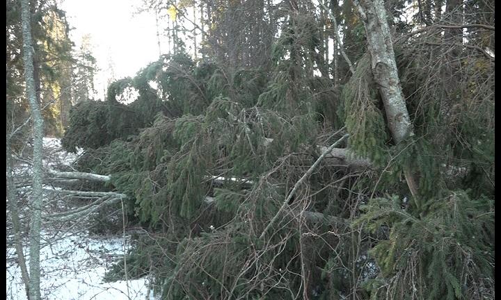 PUBLICERAT: 02.01.2019Mycket kraftiga vindar drog över Österbotten natten till onsdag och fällde träd (bilden) och orsakade strömavbrott.