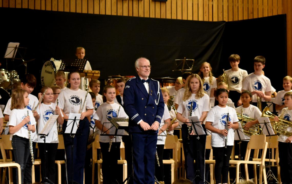 PUBLICERAT: 11.11.2018På söndagen har skolmusikkåren jubileumskonsert, 60-års jubileum, tillsammans med drillflickorna som firar 50 år. På bilden de yngsta musikerna, c-orkestern under ledning av Anders Teir.