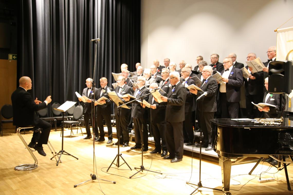 PUBLICERAT: 15.04.2018Närpes manskör firade på söndagen sitt 40-årsjubileum med en konsert i Frans Henriksonssalen, på bilden är det Tobias Udd som dirigerar..
