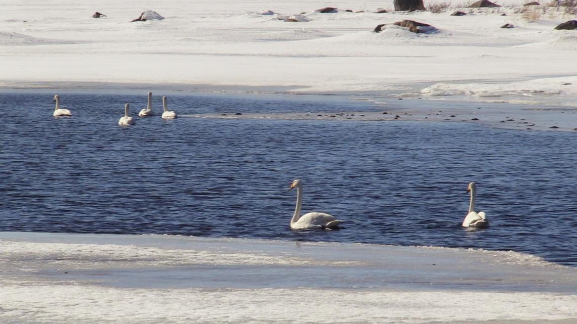 PUBLICERAT: 03.04.2018En bild från Svartösund, där ganska många svanar har slagit sig ner i väntan på mer öppet vatten och upptinande marker.