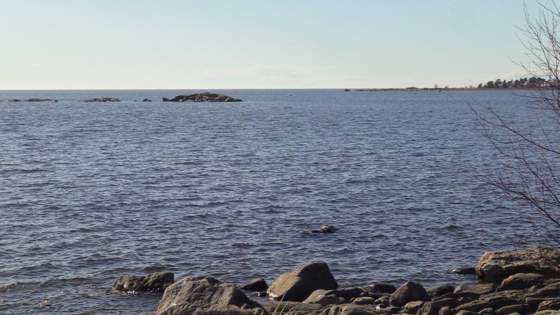PUBLICERAT: 26.04.2018Nu är den tjocka isen som täckt fjärdarna snart borta. Bilden är tagen på torsdagen vid Pjelaxfjärden där det nu finns breda stråk med öppet vatten.