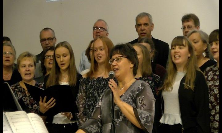 PUBLICERAT: 15.10.2017På söndagskvällen var det folkmusikmässa i Övermark kyrka med musik av en kantelegrupp från Teuva. Santa Marian kuoro från Närpes församling medverkade också under ledning av Sam Lindén.