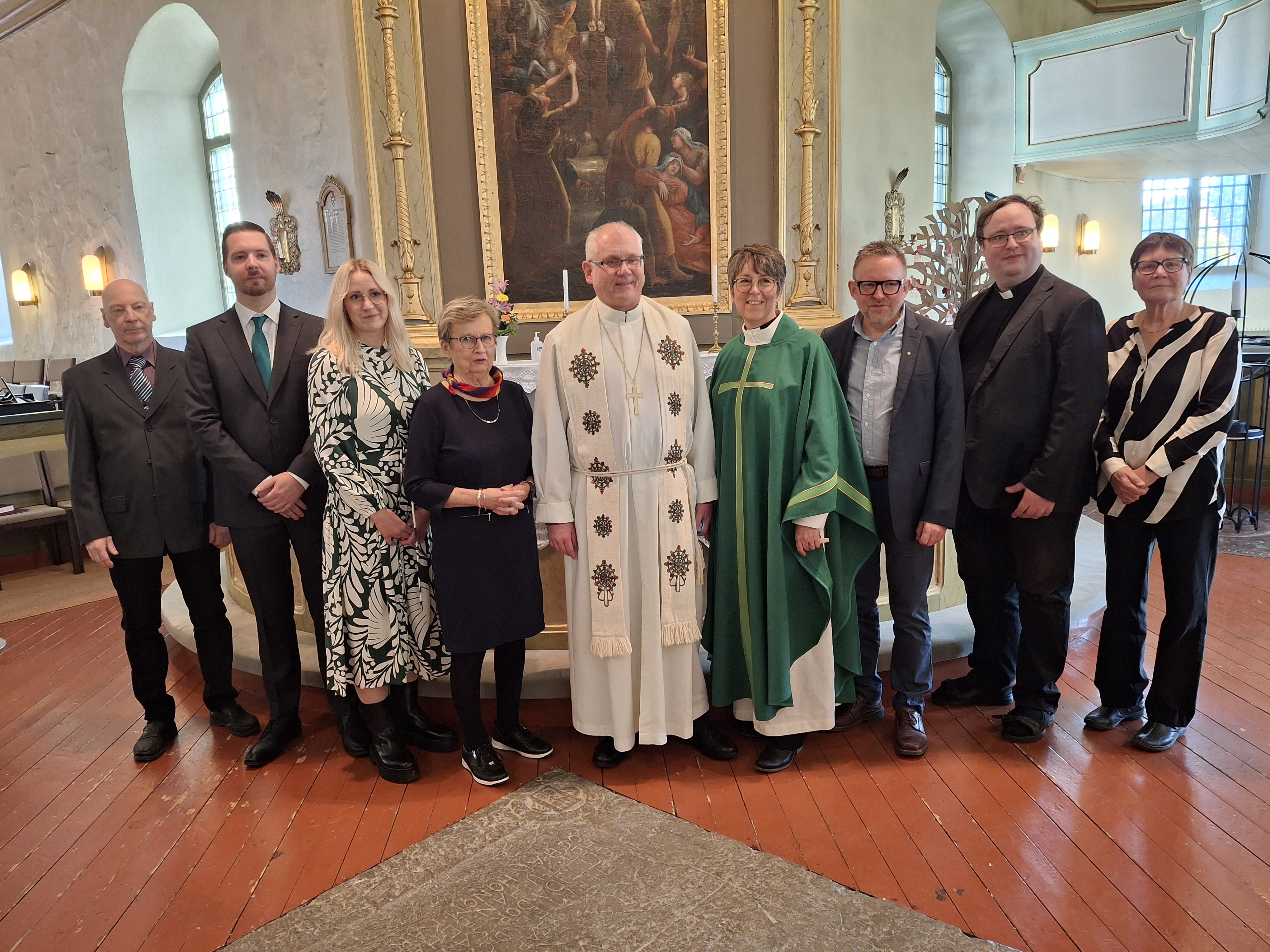 Borgå stifts biskop Bo-Göran Åstrand besökte Närpes på söndagen. På bilden står han i mitten tillsammans med dem som
