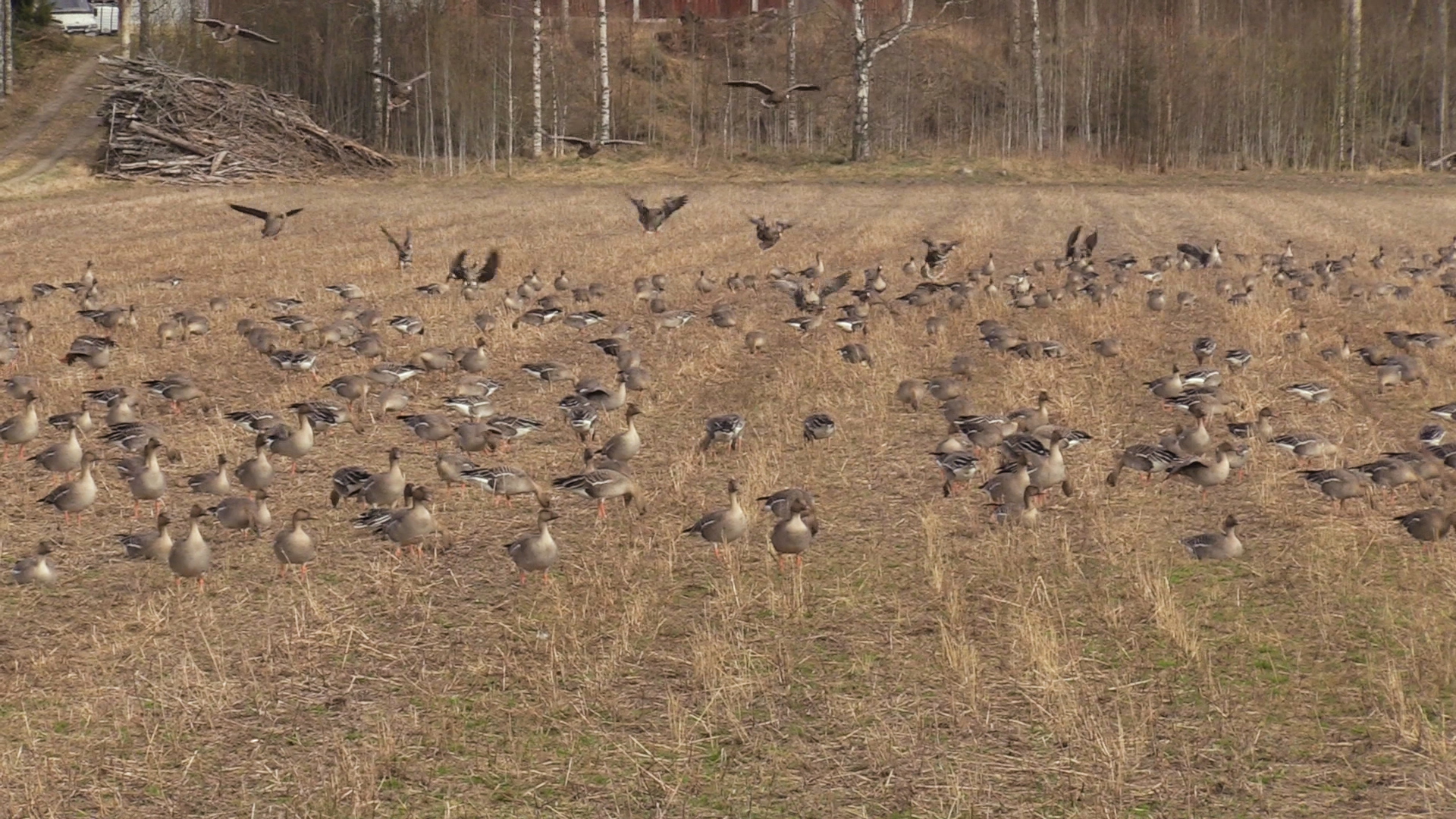 Hundratals gäss samlas på åkrarna i Närpes nu. Det är frågan om grågås mest och vitkindad. Samlingar av stora fåglar är ju ett vanligt fenomen i Närpes om vårarna men flockarna är kanske större än vanligt just nu. fredag, april 24, 2026